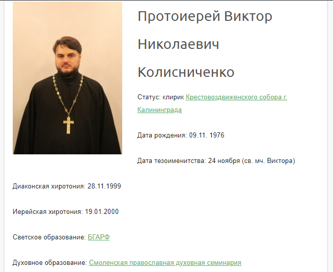 Настоятель Крестовоздвиженского собора г. Калининграда; руководитель отдела религиозного образования и катехизации Калининградской епархии
